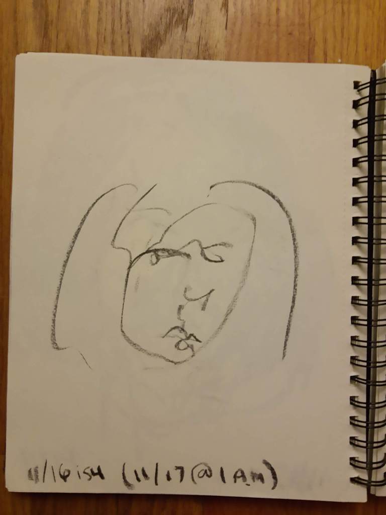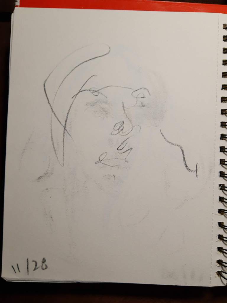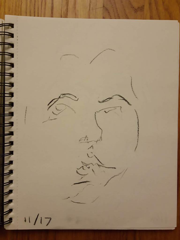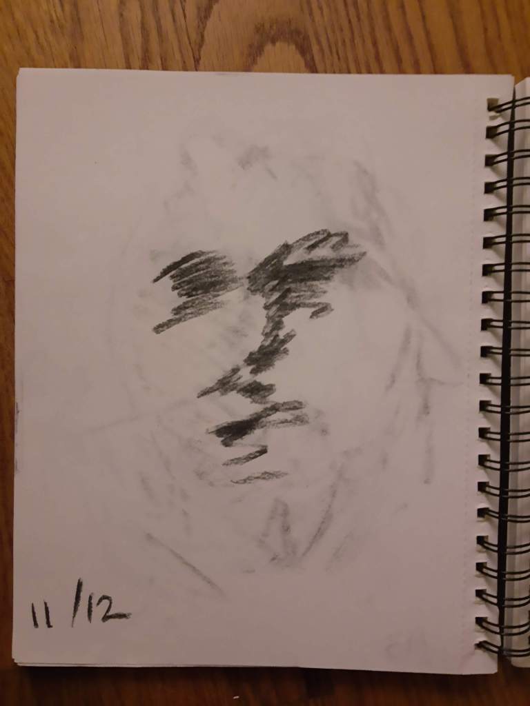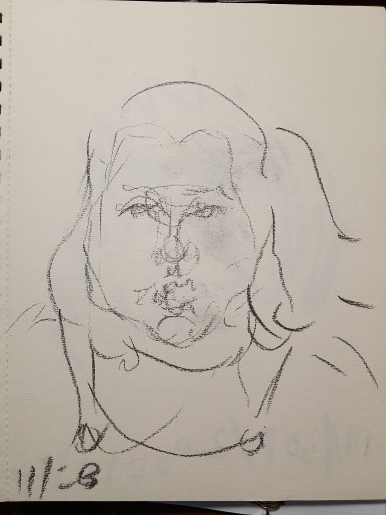 Because I already had an alarm set for 8pm each day, I decided I might as well draw every night when my alarm went off. And I was pretty consistent for a month and a half, and then I stopped. I made myself draw even when I didn’t want to draw. Some drawings are more gestural, some are just a few marks, and some I spent more time on. Some drawings really suck – the eyes are too close or too far from each other, the proportions are off, the nose looks flat and squished. Some drawings I spent 5 seconds on, some I spent an hour on. Some I drew in the dark. When I skipped a few days, I made it up by drawing more than one self-portrait over the next few days. At the end, I was skipping more and more days and I was spending less time on my drawings, so I thought it would be a good place to stop. I’m going to draw myself every day again soon. I want to fill that sketchbook with bad self-portrait drawings. My favorite drawing is the one from 10/22/2020 because I stopped caring about details and focused on shadow and gesture. Here are my daily self-portrait drawings from 10/15/2020 – 12/5/2020: