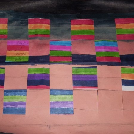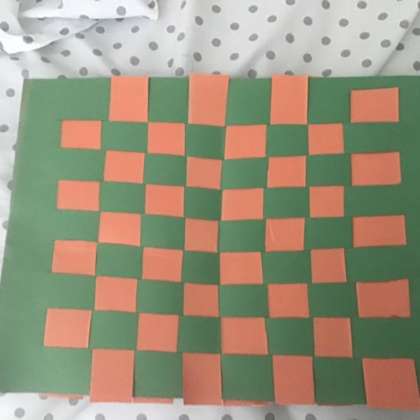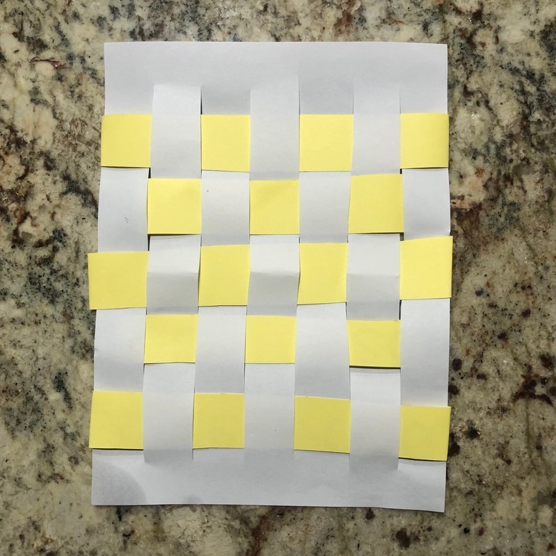 A few weeks ago, I taught a lesson on paper weaving to lower and upper elementary. We looked at textiles from the Shipibo Conibo tribe and discussed how different textiles are created. Then, we looked at the weaving process and learned that to weave, we need to follow an over, under, over, under pattern. Students decorated their papers to create their own patterned textiles to prepare for weaving, then they cut out slits in one paper for the loom, and strips from the other paper for weaving strips.