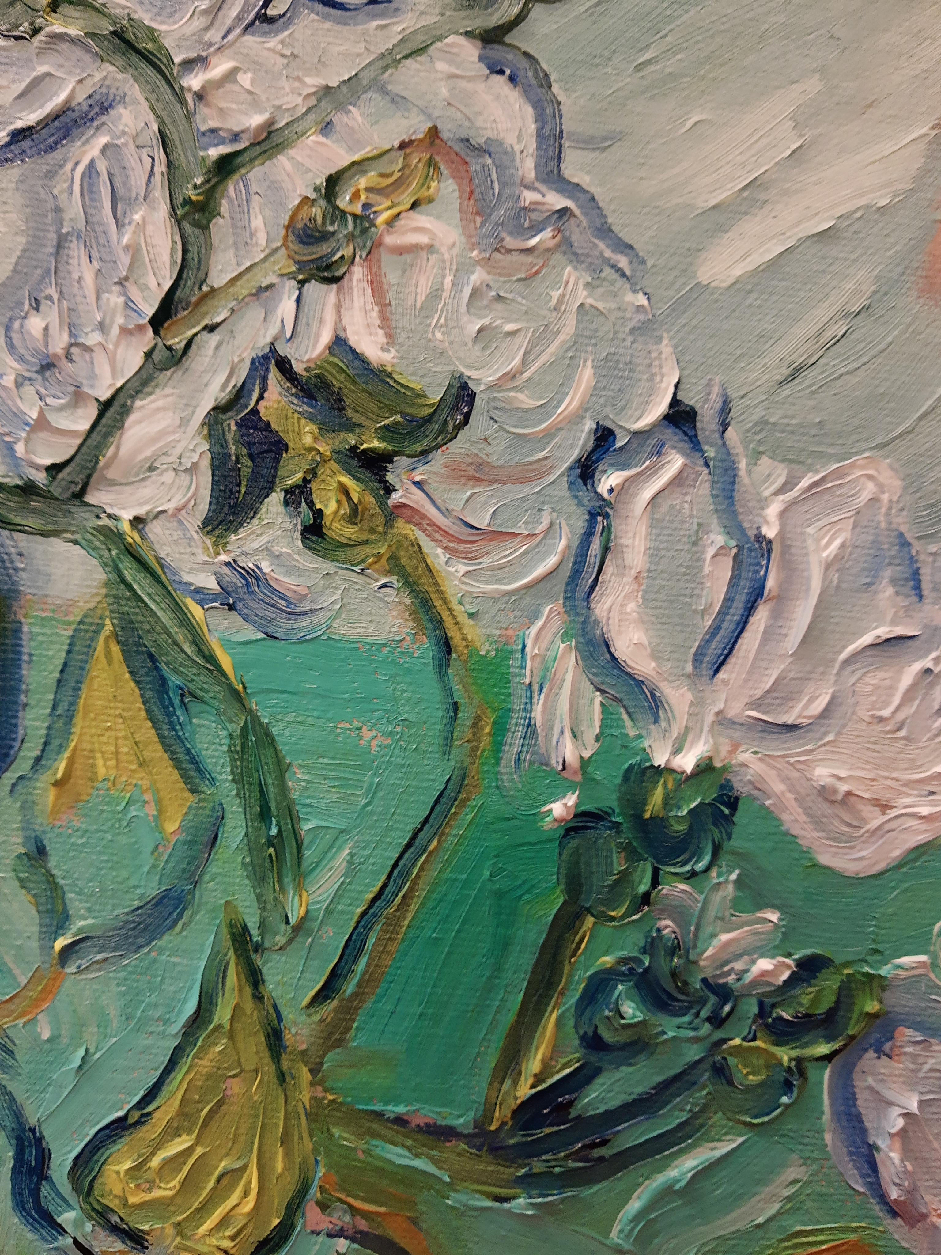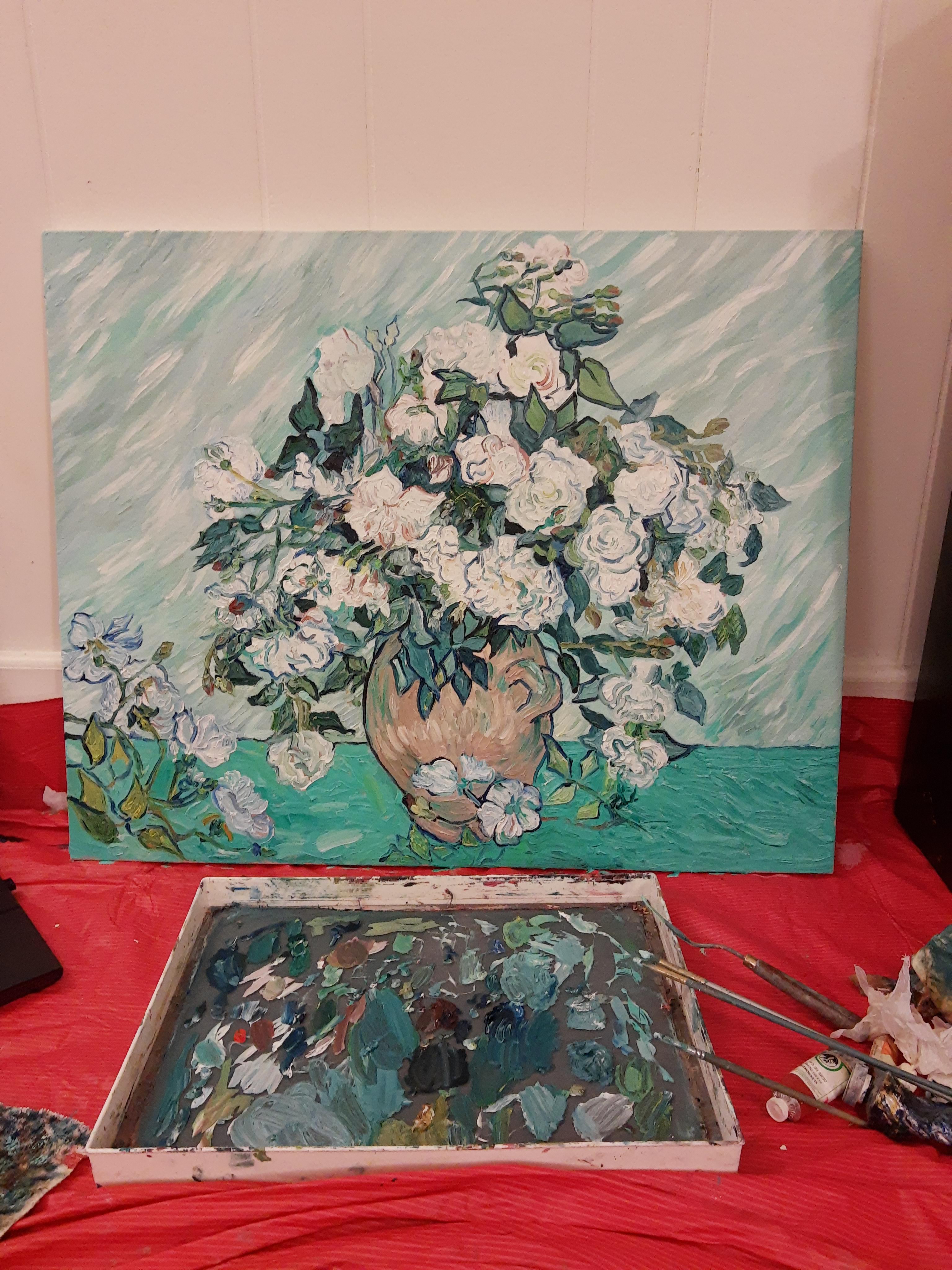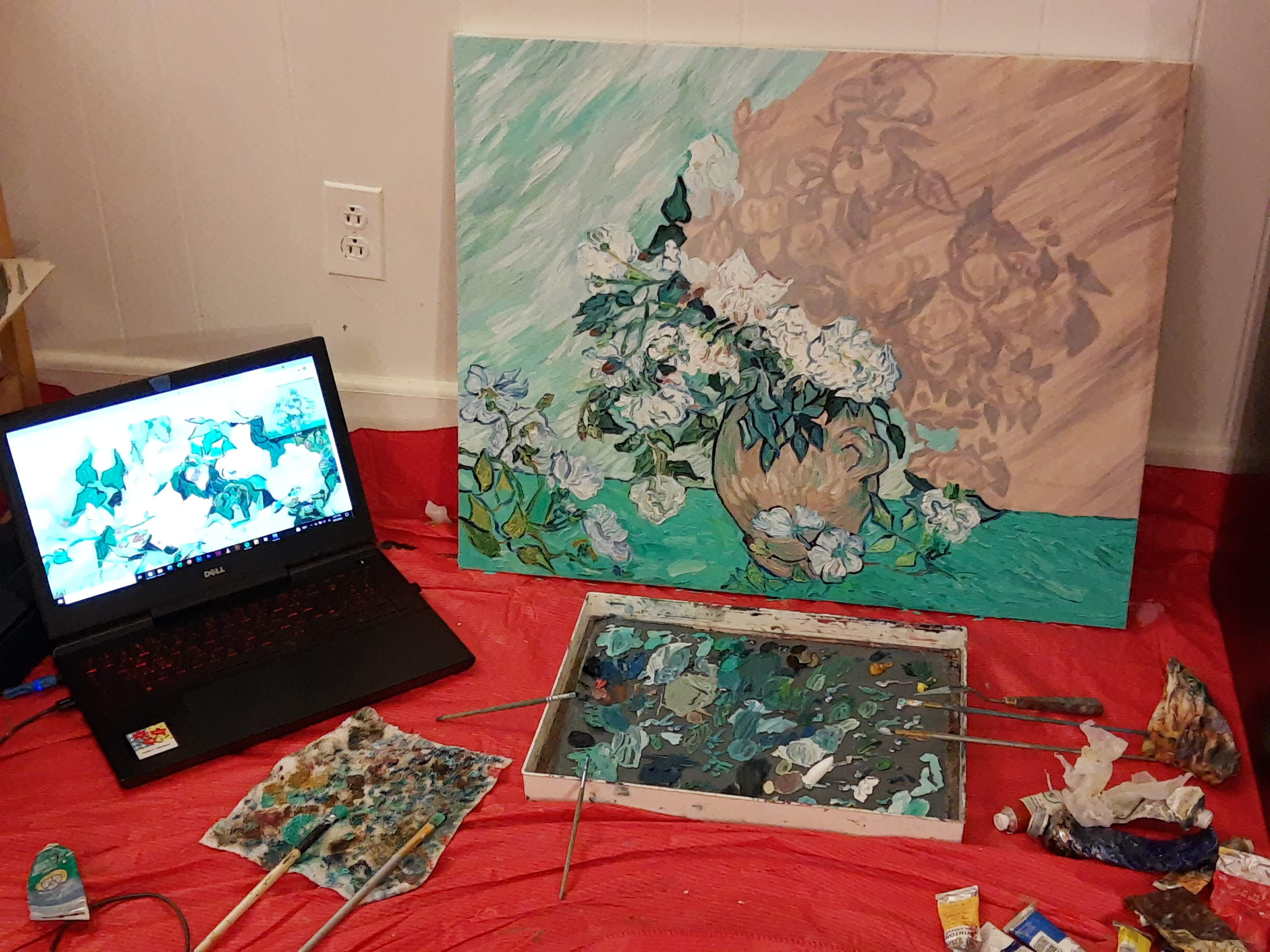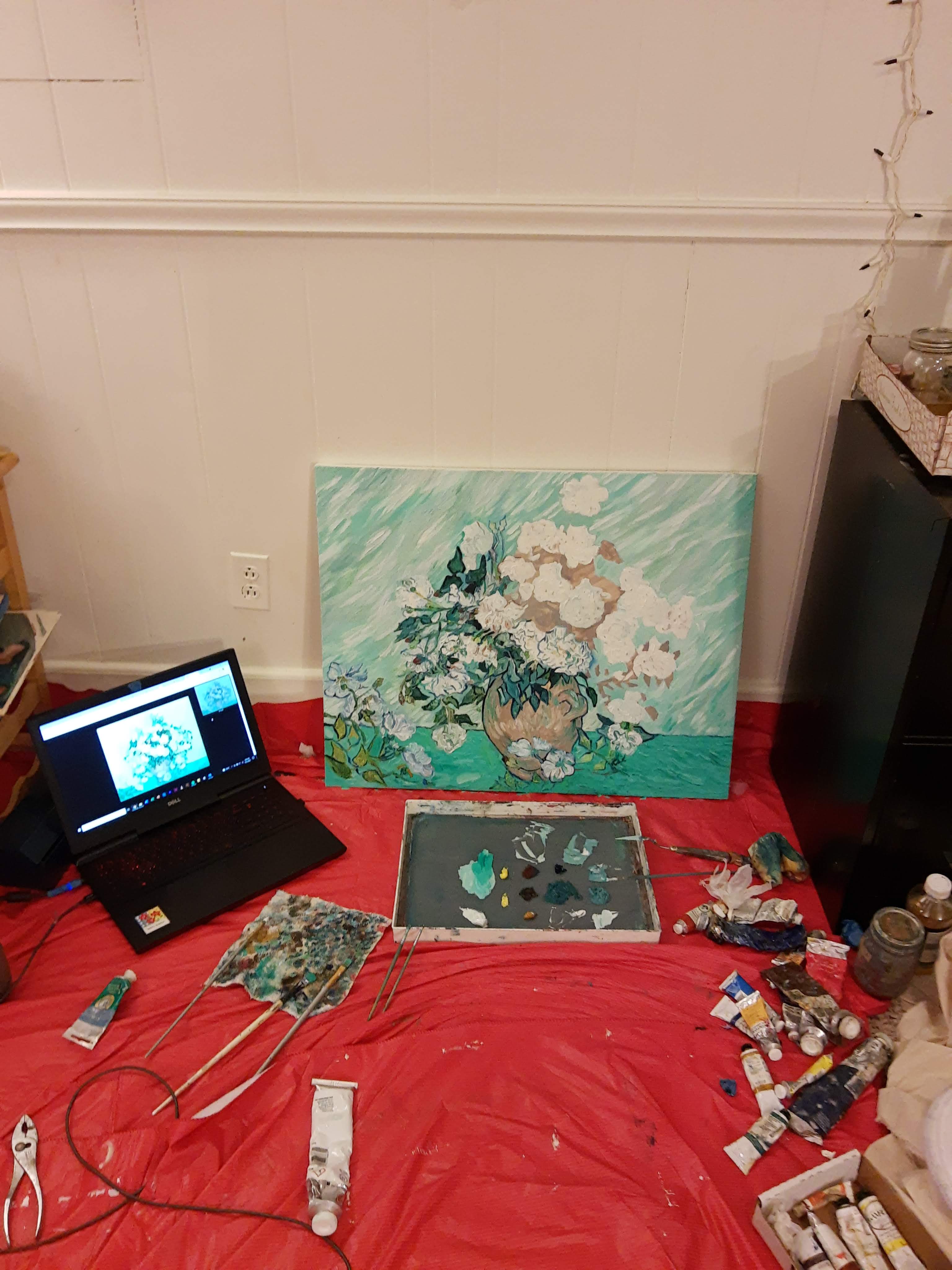 In the painting studio, students painted on a large piece of paper and also experimented with painting marks on smaller papers.
