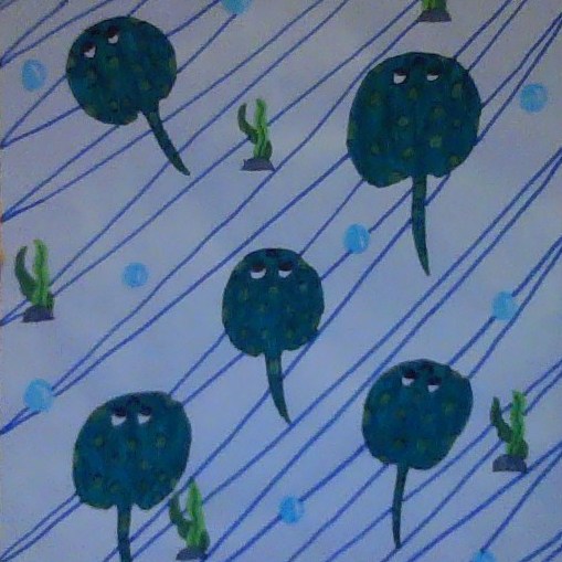 Last school year, one of the lessons I taught was about creating rhythm using repetition and movement (moving the eye around the page). The lesson was taught virtually and these are some of the artworks my students came up with: