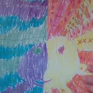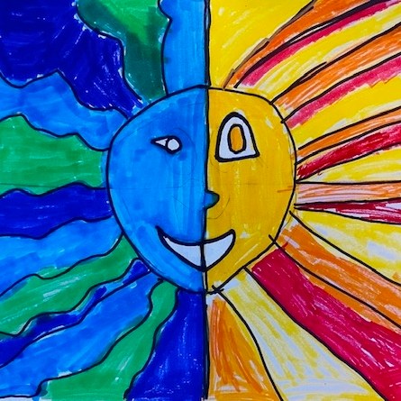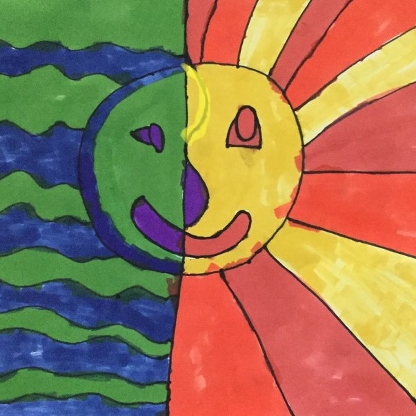 Warm & Cool Sun & Moons: I taught this lesson during my student teaching and I taught it again when I first started teaching. Students learn about warm and cool colors and draw a warm sun and cool moon. The moon side is drawn in profile view (to the side) and the sun is facing forward. We also reviewed patterns and students added different repeating shapes and lines into the background of their drawings.