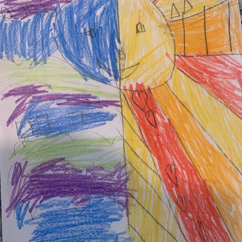 This is from a while ago, perhaps a year ago. But I did this project with my lower elementary students. We learned about Jacob Lawrence and his cityscapes, and then students drew a city with oil pastel. Then, they added black outlines on top with acrylic paint and extra colors with tempera paint. Everything was drawn on cardboard because toned paper adds an extra element of pizzazz. So here they are:
