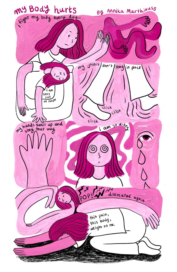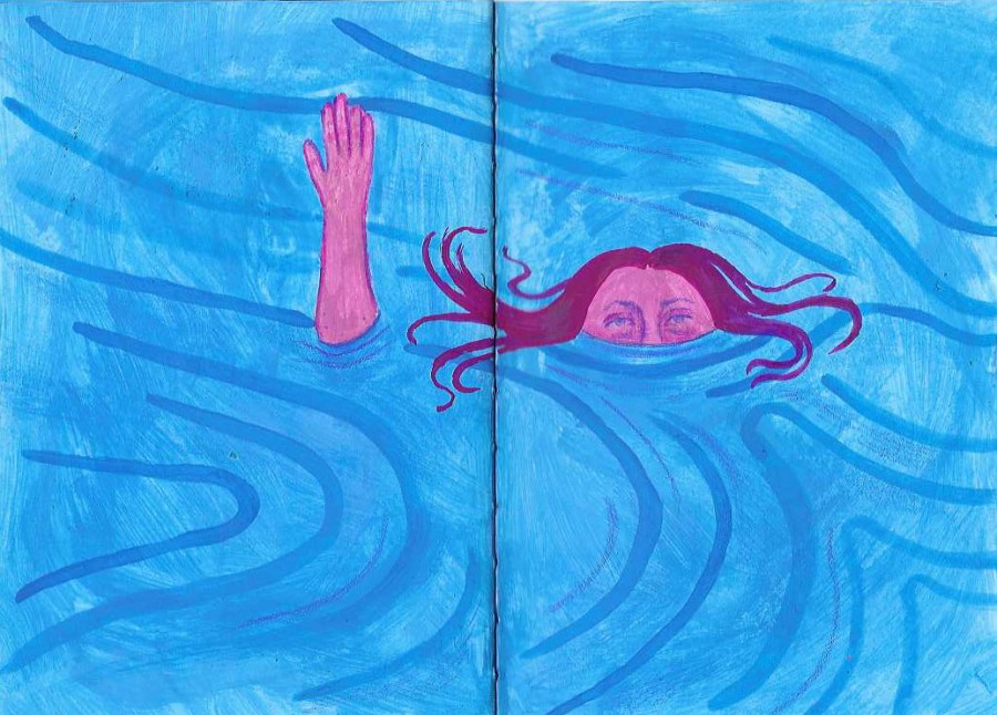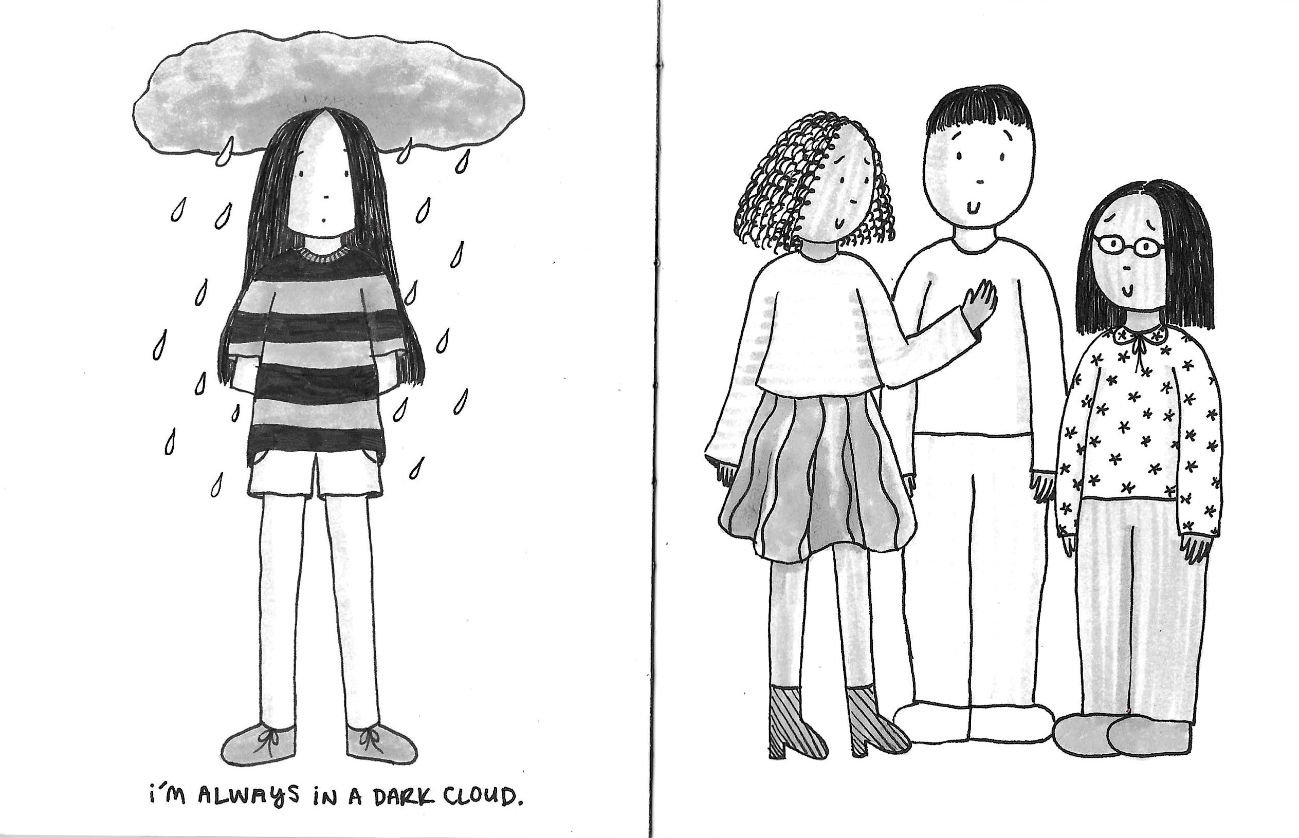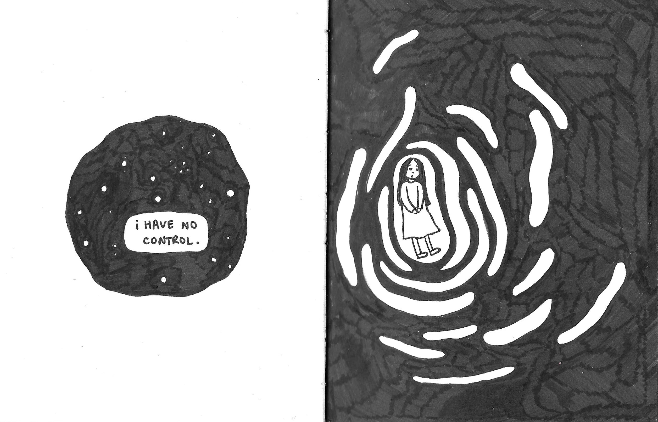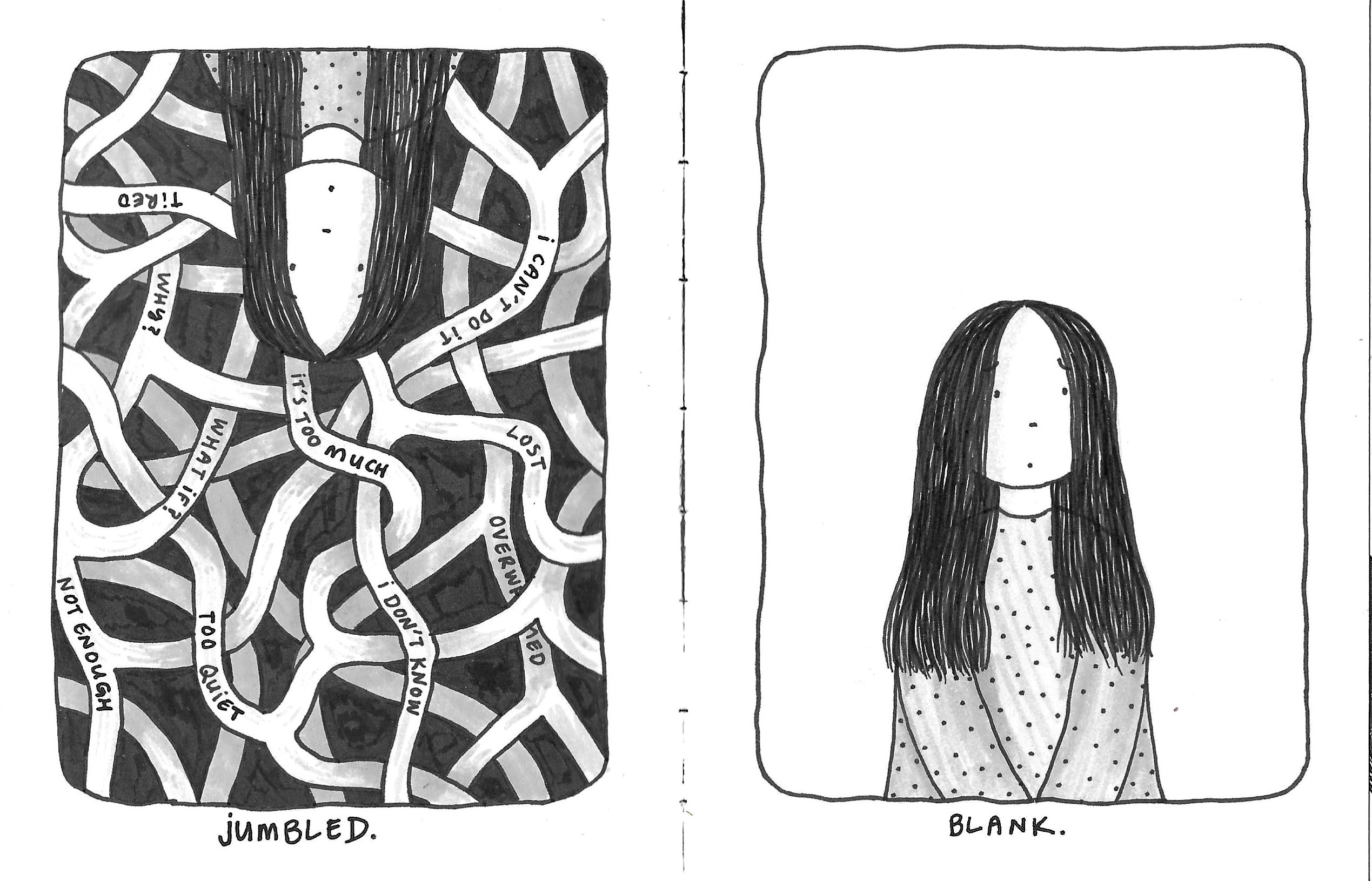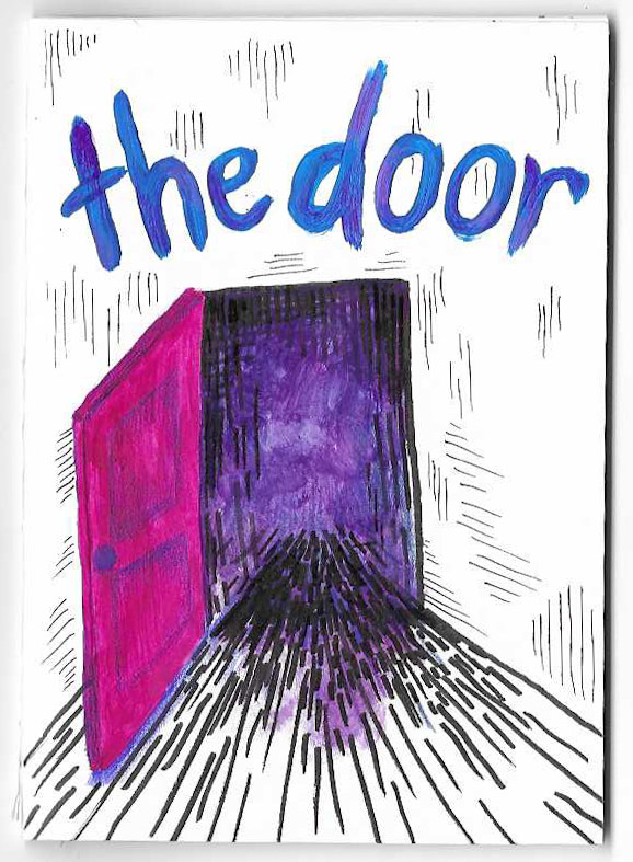 Comics & Zines depressed – a zine, (pen and marker on hand stitched book), 2020 the door – gouache, colored pencil, pen on hand stitched book, 2024