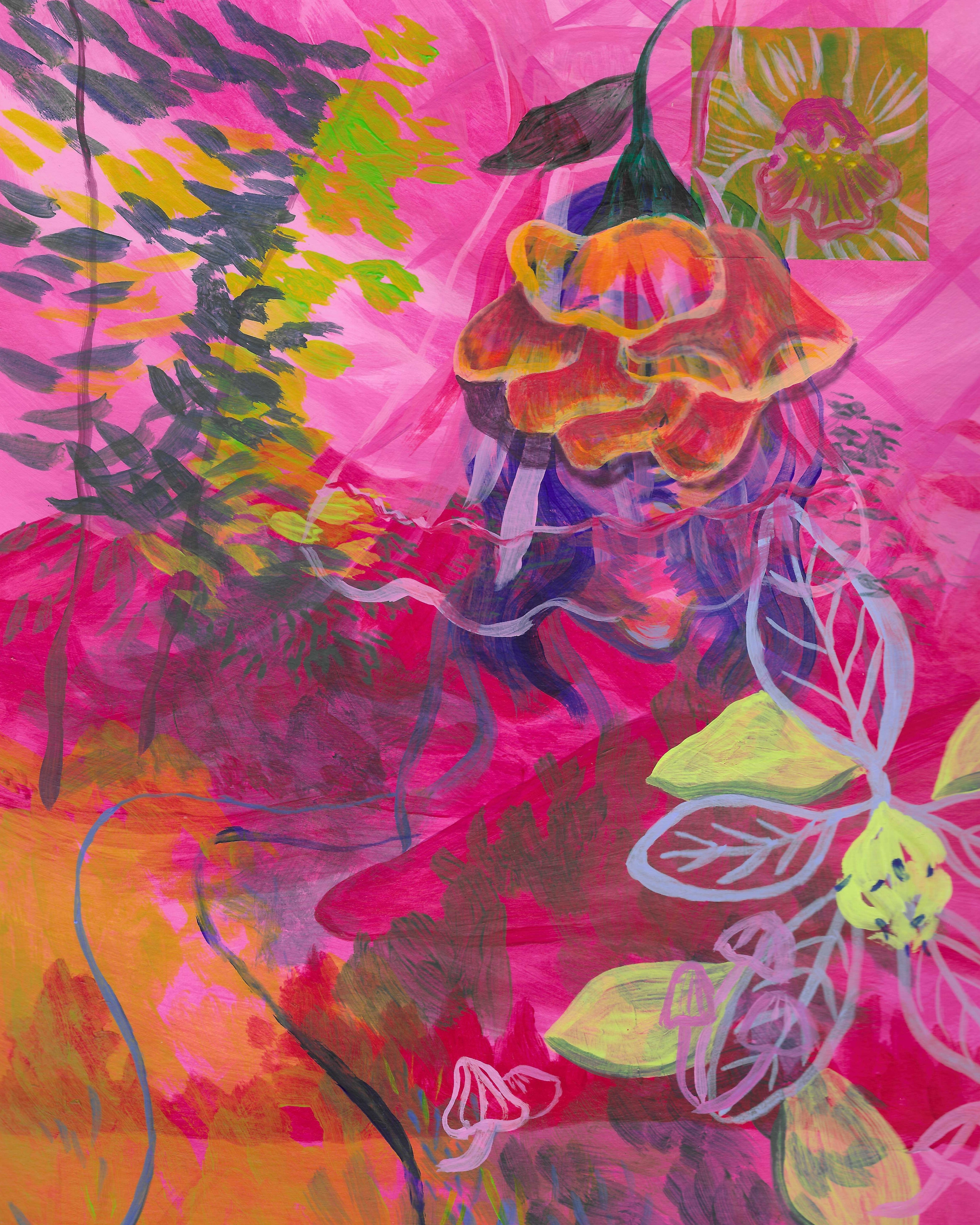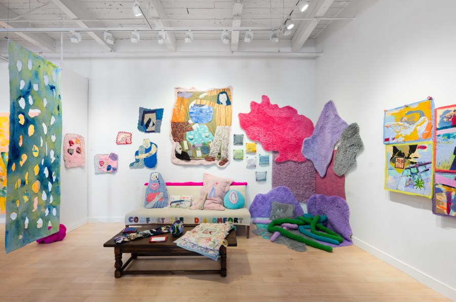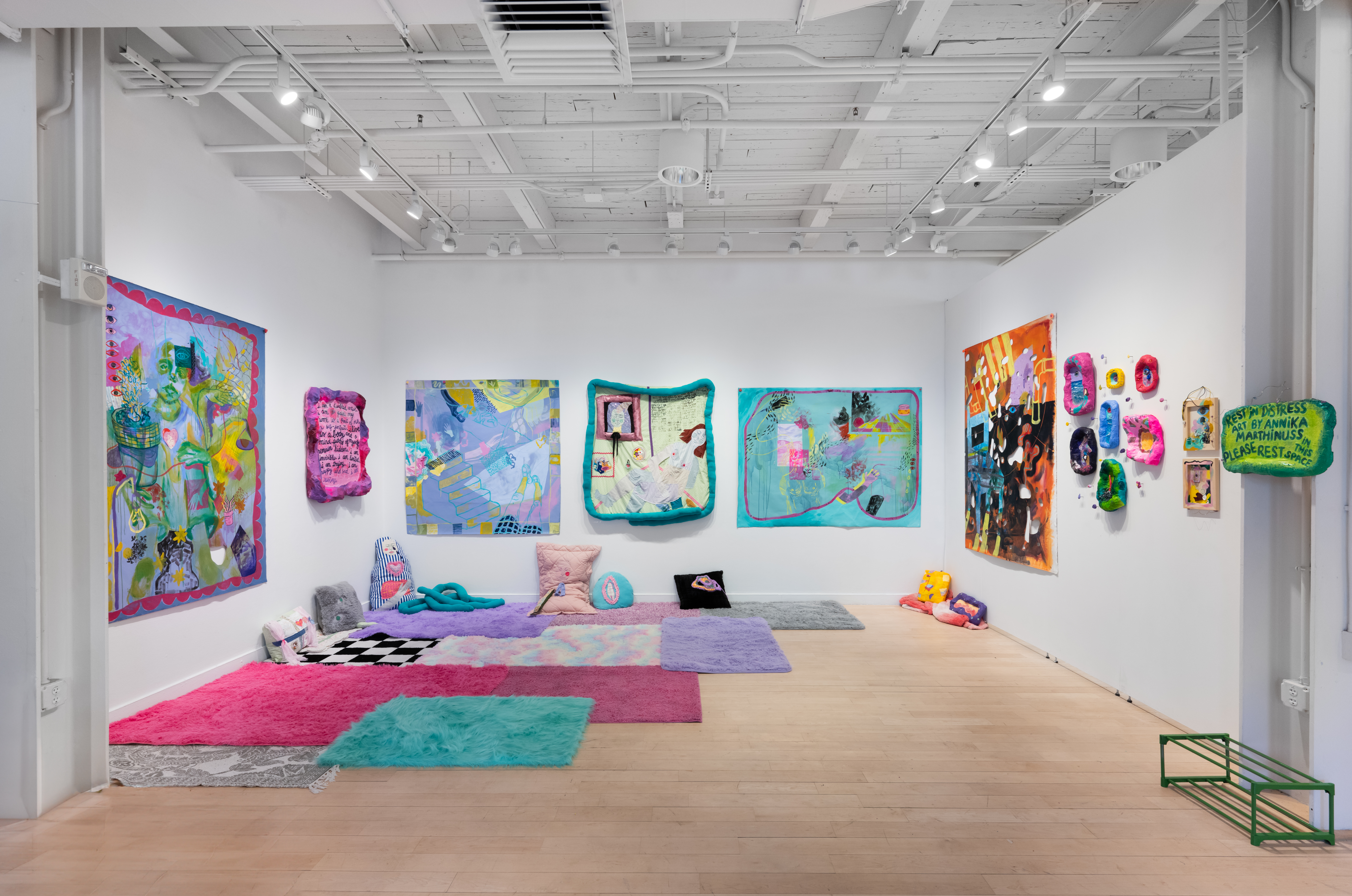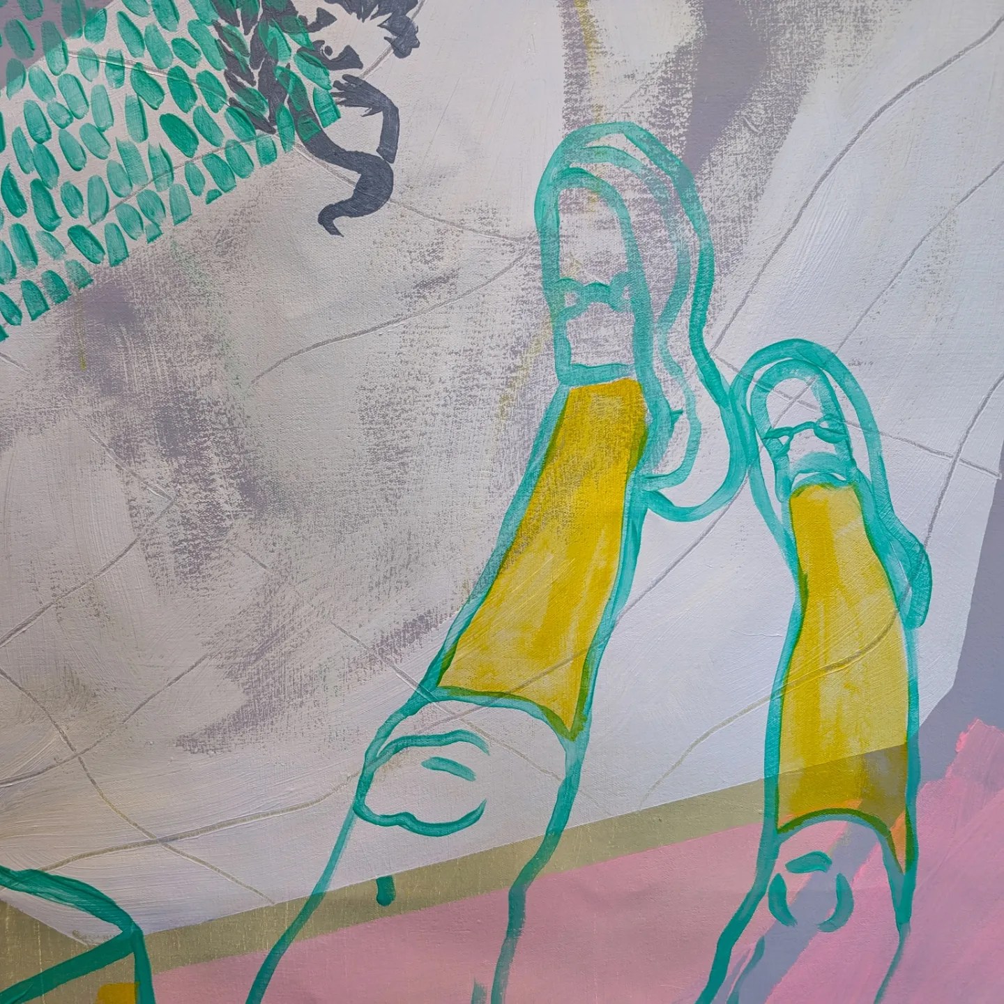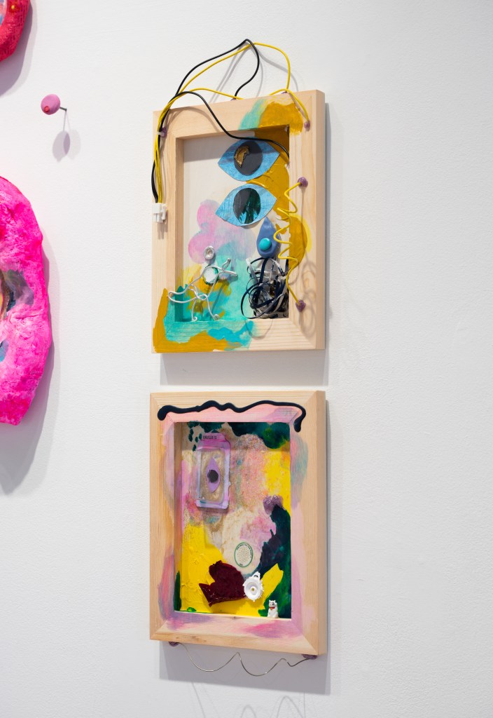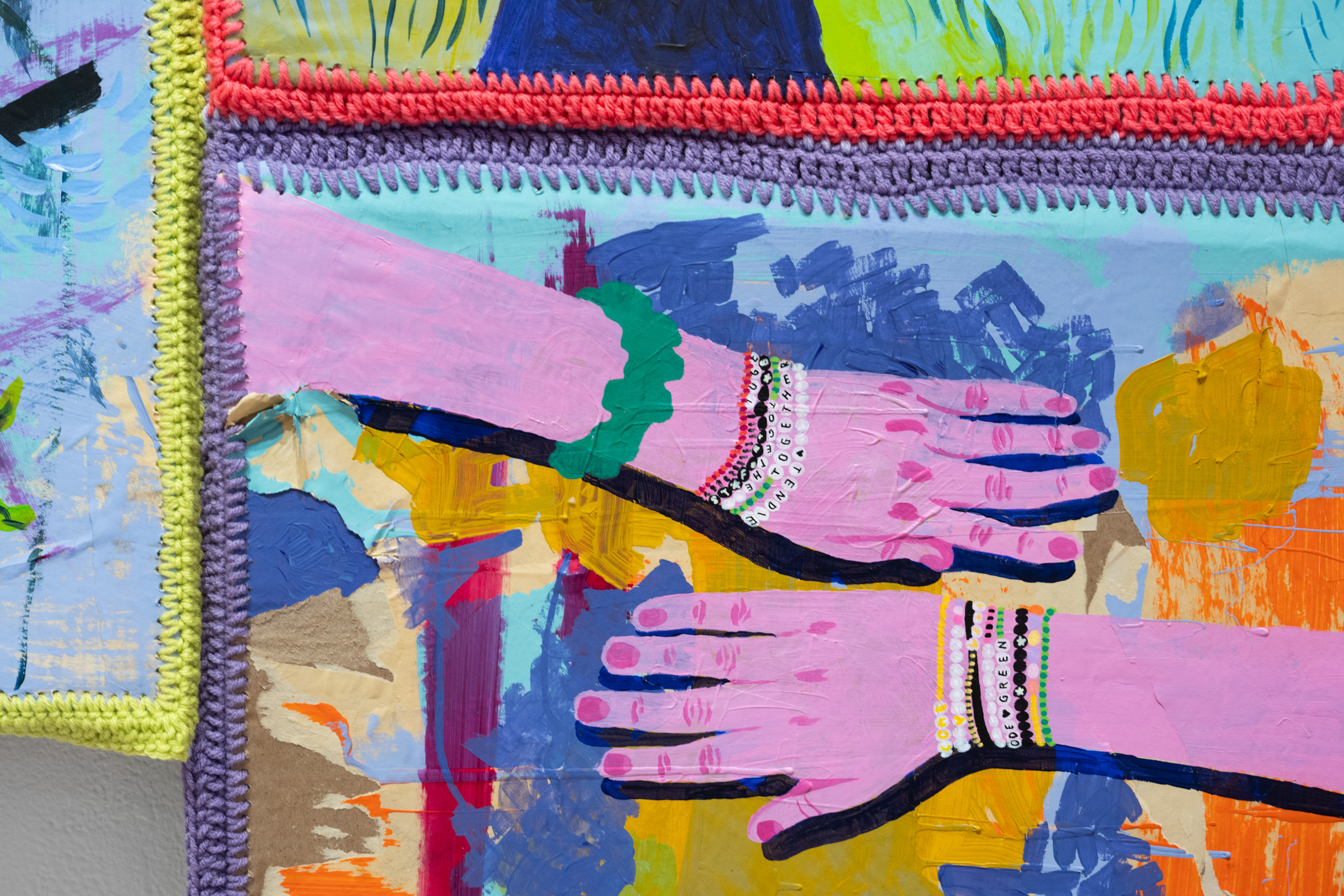Pain & Relief Images above by Vivian Marie Doering 2 images above and 3 images below by Vivian Marie Doering 2 images above by Vivian Marie Doering Growing Pains, fabric and ribbons and thread and grommets, ~3’x2.5′, 2024 Daylight, acrylic on paper, 2024