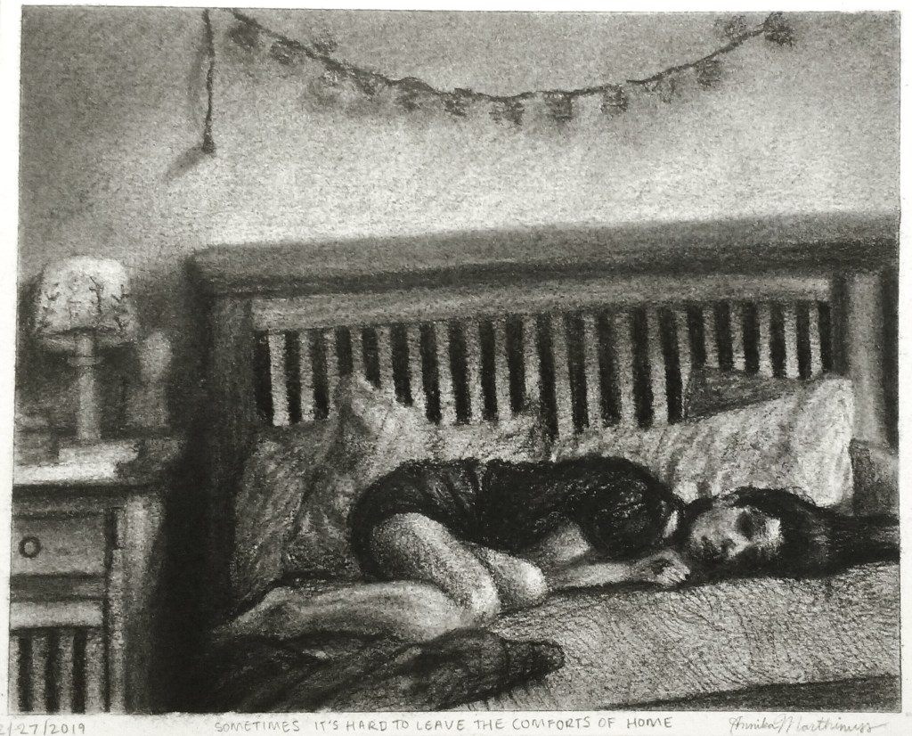 sometimes it’s hard to leave the comforts of home, charcoal, 2019